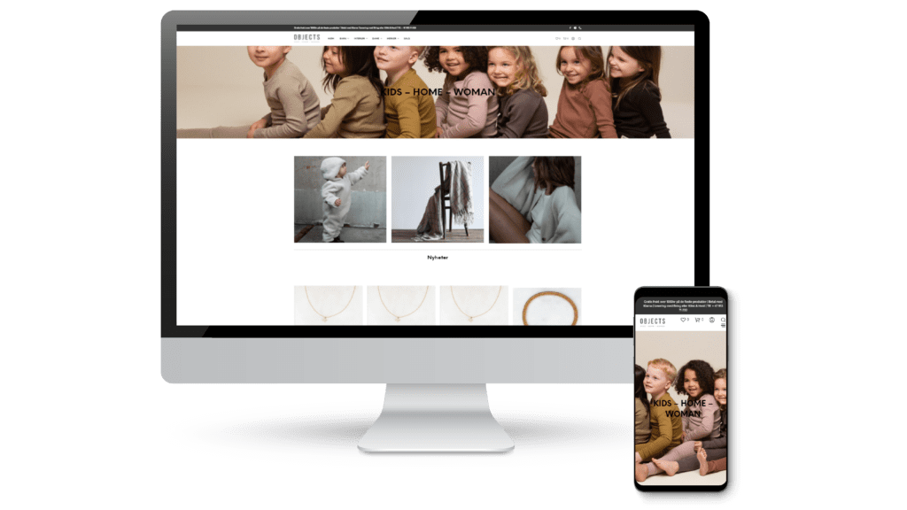 Produktene kan speiles på din egen nettbutikk. Nettbutikken kommuniserer med kassesystemet så man vet til enhver tid hva som er solgt eller ikke.